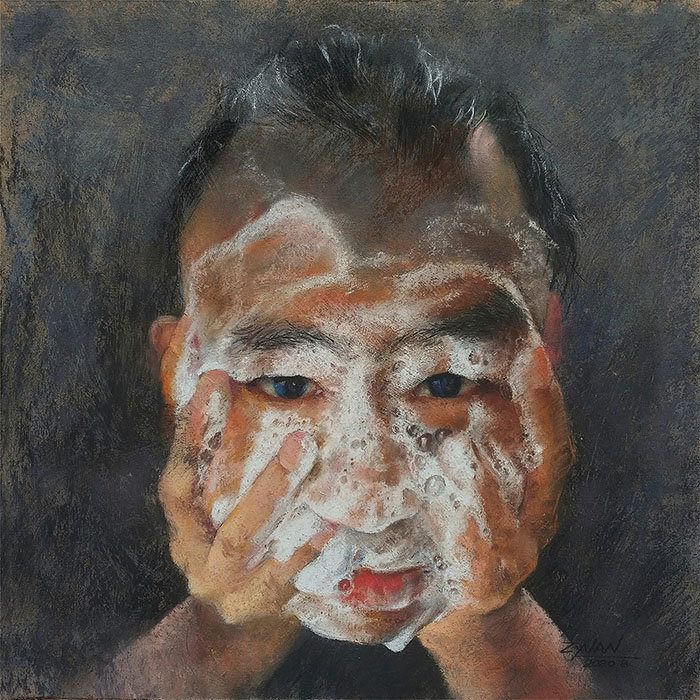 优秀奖 南征 Nan Zheng《洗净》(Wash Cleanly) 50×50cm 粉画 2020