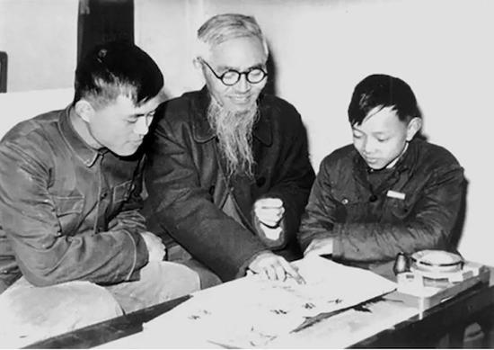 幼子丰新枚(左)、丰子恺(中)、外孙宋菲君(右)
