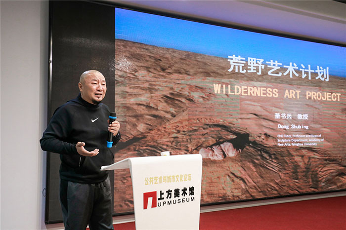 董书兵围绕“荒野艺术计划”展开探讨,这是他近期开始提出一个艺术创作计划,是一个有连续性、观念性的创作计划,因为创作基地都是选取在戈壁、沙漠、山区等人迹罕至的地言方,所以得名“荒野艺术计划”。目前这一创作计划下已完成的作品有:《戈壁方舟》《大地之子》《无界》《风语者》《汉武大帝》等。