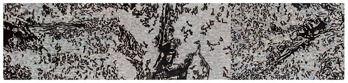 视觉上独特的最新作品《法自然系列》,薛松从传统书画艺术中的“取法自然”入手,在创作中直接取自然的图示,将他在飞机上看到的自然景象,简化成抽象图案,与传统“道法自然”的意义相契合。