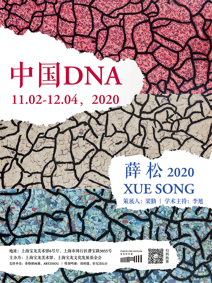 这次他在宝龙美术馆举办的“中国DNA:薛松2020”是对中国传统文化碎片式的、图示化的提取,呈现了很多他在疫情期间的创作,在今年的经济与人文大环境下有一定语境意义。2020年11月1日开幕当天是艺术家薛松的生日,从其作品里的中国传统文化符号与图腾可以感知到他2020年以来的艺术思考与文本实践。本次展览持续至2020年12月4日。