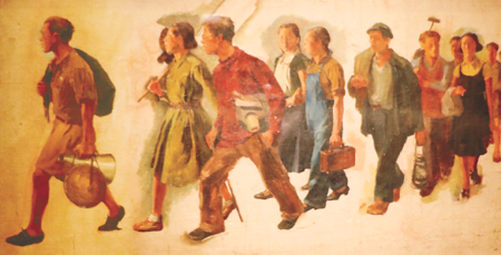《婆媳上冬学》是展览中的另一幅经典。“这幅画反映了新中国成立后的扫盲运动,冬天婆媳相互搀扶着去上课的情形。这里也包括新中国的移风易俗,因为封建时代没有那么好的婆媳关系,类似反映社会现实的作品在展览里还有很多。 ”许奋说。 《婆媳上冬学》也是谈到中国画变革话题时总会提及的作品。“它是传统中国画如何向西方写实绘画学习,进行中西融合的重要作品。有关中西文化并举、用艺术表现生活、回归传统,湖北美院从1920年到今天,脚步都特别稳健。” 《美术》杂志主编兼社长尚辉认为。尽管经典云集,但许奋却希望大家用各自的眼光去发掘各自的亮点,这样每个人的观点就会变得很独特。当这些美术作品从多家艺术机构、学校、私人藏家、艺术家个人手中集结并展示时,中国美术教育发展的历程就勾勒出来了。湖北美院老校友、中央美院教授罗世平在看过展览后,感慨万千:“一是高兴,二是期盼,期待能够做得更好一点。我看得出,这次文献展办得很认真、做得很全面,校史梳理得也很清楚。”