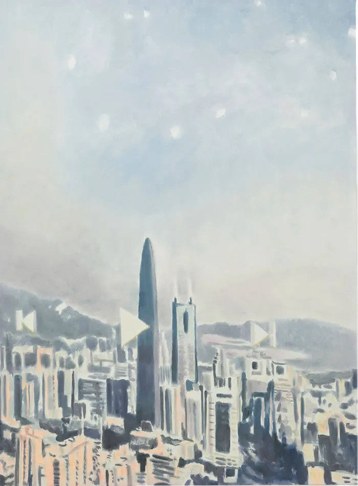 展览中的其他画作讲述了历史,包括《细胞》(Cell,2019),这是一幅神秘的图像,展示了20世纪30年代柏林使用的一扇匿名牢门,门上有两个观察孔,似乎是为了把监狱长和囚犯的目光融为一体。在《深圳》 (2019年),艺术家探索了过去、现在和未来之间日益加速的联系,这幅作品描绘了一幅中国城市的鸟瞰图,这是艺术家从笔记本电脑播放的一部纪录片中截取的图像,覆盖着游戏、倒带和快进的符号,原本普通的城市景观呈现出一种对过去和未知世界的怀旧氛围。