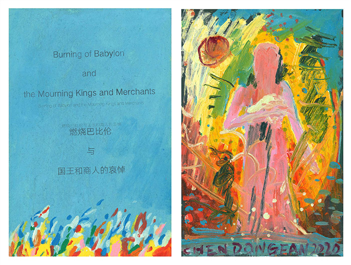 陈栋帆,《燃烧巴比伦与国王和商人的哀悼》,2020年。纸本油画,11.2 x 15英寸。 ©陈栋帆,致谢否画廊
