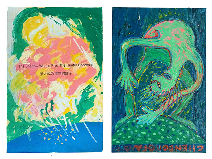 陈栋帆,《猎人成为猎物的影子》,2020年。纸本油画,11.2 x 15英寸。 ©陈栋帆,致谢否画廊