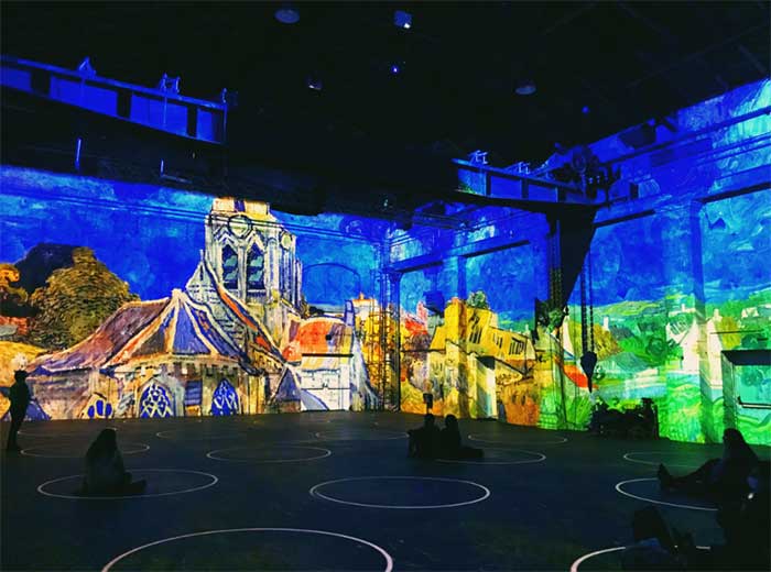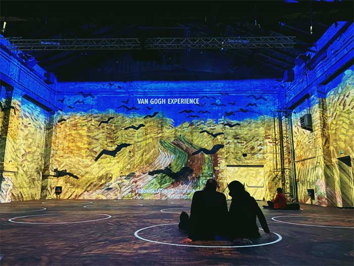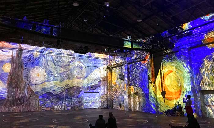 灯光渐暗,音乐响起,梵高强劲的笔触、浓烈的色彩、极富表现力及个人标志性的艺术就此铺展开来。