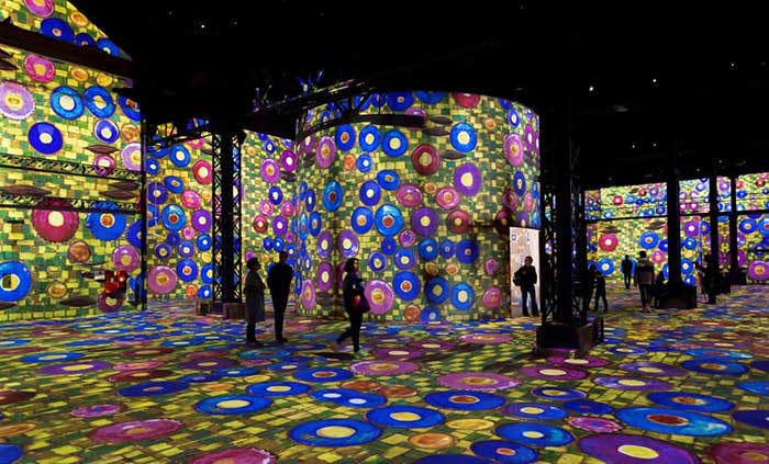 除了梵高,詹弗朗戈用类似的沉浸式手法还演绎过莫奈、雷诺阿、夏加尔、达利的经典作品,他所制作的“维也纳分离派”创始者克里姆特的光影展更是巴黎光影博物馆的开幕作品。这个建成于2018年的数字化艺术中心,在开放的短短两年时间内迅速成为艺术爱好者的新宠,并推出了日本浮世绘、奥地利当代艺术大师百水先生等不同时代经典作品的主题秀。