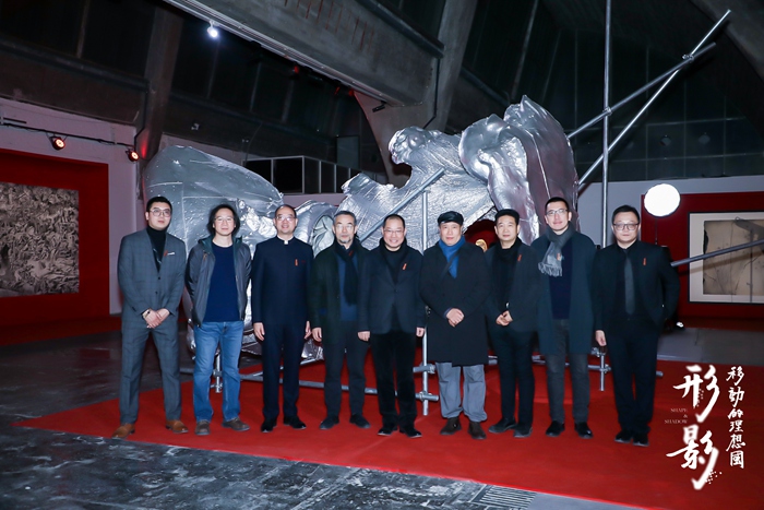 开幕式的最后,艺术家高振鹏与中国一汽红旗造型设计院副院长张铭交换了礼物,并由中国一汽研发总院院长徐世利,中国一汽红旗造型设计院副院长张铭,艺术展总策划、中央美术学院美术馆馆长张子康,北京798艺术区创始人、董事长王彦伶,中央美术学院雕塑系隋建国教授,中央美术学院研究生院常务副院长陈琦教授,共同为开幕式进行剪彩,揭开本届艺术展北京站“形影”的神秘面纱。