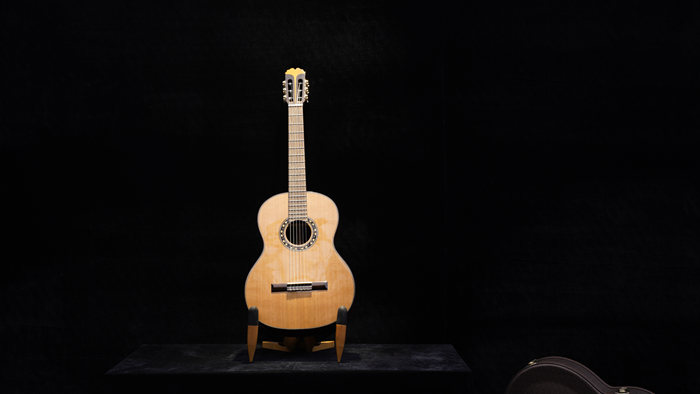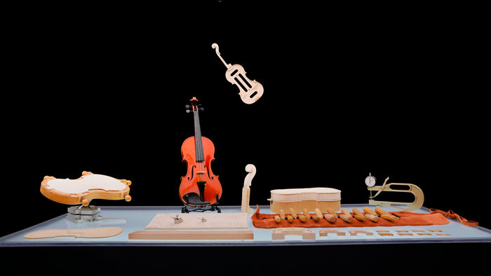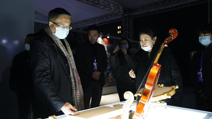 艺术家王妍力在现场展示了一把借鉴斯特拉迪瓦里黄金时期琴型的中提琴,琴身长413毫米,面板年轮均匀,横向射线丰富;背板由两块枫木对拼而成,花纹对称。该把提琴个性化调整契合当代演奏者的需要,保证了音色的平衡和充分传导性,具有良好声学性。