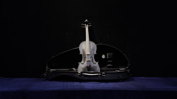 同时,现场同时呈现了一把碳纤维小提琴,熊周艺使用小提琴制作界正在探索新的材料,能在零下二十度的户外演奏的小提琴。