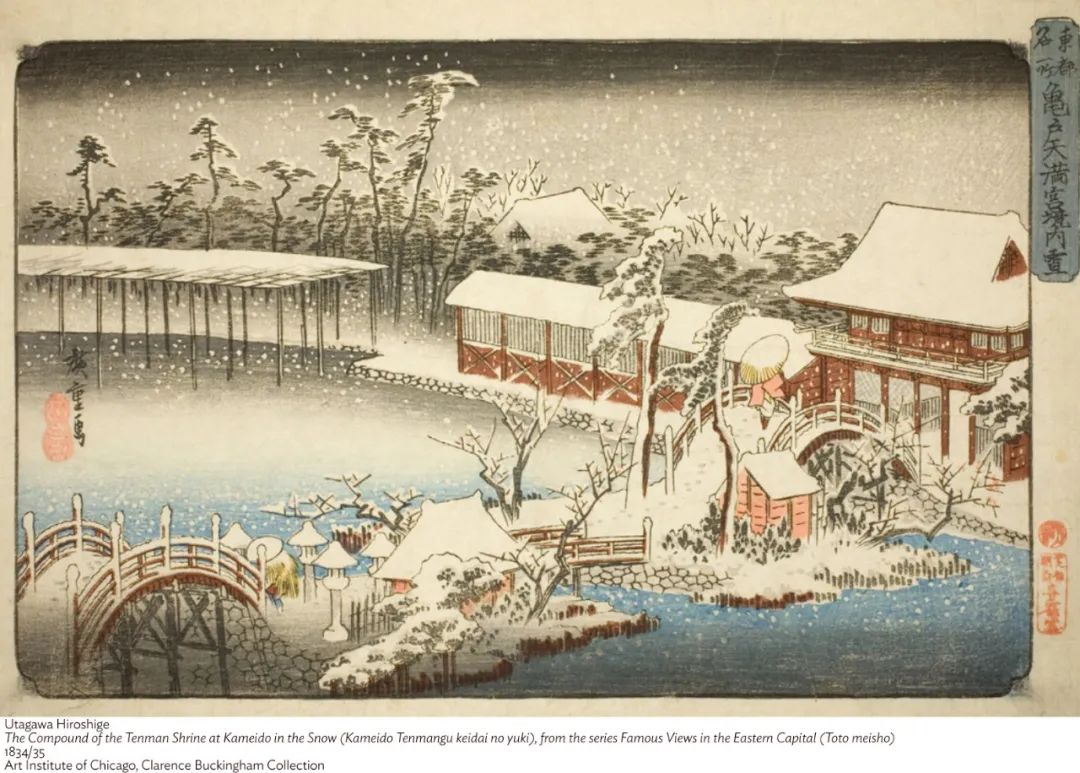 《桑维卡》与《龟户神社在雪中》的前景中都有小桥形成独特的对角线,更让观者在画中领略到曲折之美。