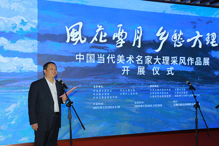 2021年1月20日下午,由中国美术家协会、中央美术学院、中共云南省委宣传部、中共大理州委和大理州人民政府共同主办的“风花雪月、乡愁大理——中国当代美术名家大理采风作品展”在大理州群众艺术馆顺利开幕。