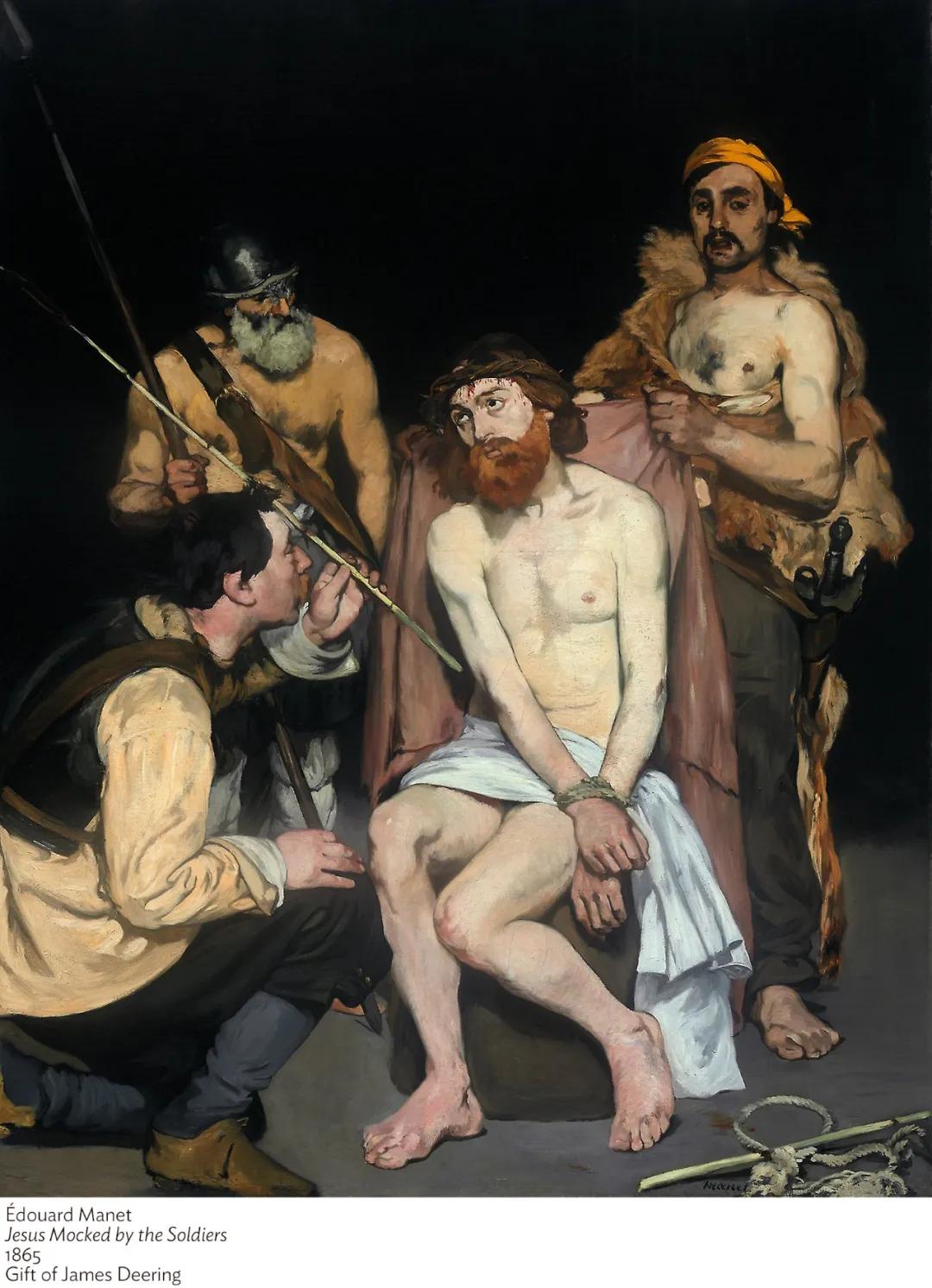 画布的质地很精细,材质与马奈的另一幅作品《被士兵嘲弄的耶稣》(Jesus Mocked by the Soldiers)一致——这两幅画的画布来自同一匹织料。