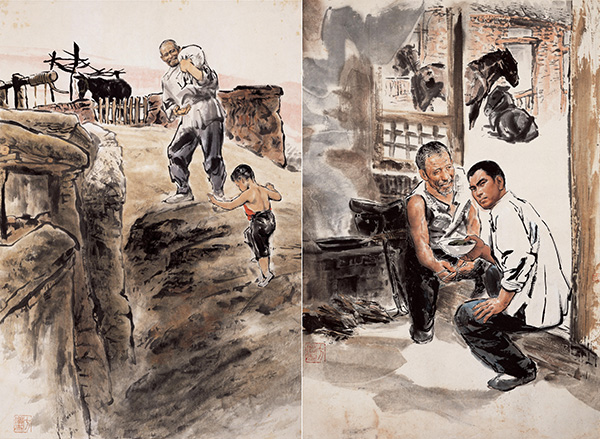 作为教育家,方增先老师的结构素描是一种以线勾勒来表现人物结构关系的表现手法,最早吸收了美国画家乔治·伯利曼的人体解剖结构素描,是顺着一条清晰明确的学术路线发展变化的。后来像吴山明、吴永良包括吴献生在编写教材时,把这种结构素描归结成线描、素描,也成为素描的一种。另外,方增先老师以写意花鸟画技法转而为表现人物画题材服务,成为当时业界广为接受的表现技法。那个时代创作、教学与实践完全是贯通一体、系统完整的。他的《怎样画水墨人物画》以几十万的发行量,影响了当时和后来数十年间从事中国画创作的几代人。刘文西先生就经常把方增先老师的创作理念传授给他的学生,包括后期的周思聪,如果没有和方增先老师在艺术上的共识,也就没有后来周思聪水墨技艺的提升。所以,作为实践家的方增先,不仅形成了艺术教学创作上的一套有效方法,而且在当时的影响遍及全国。