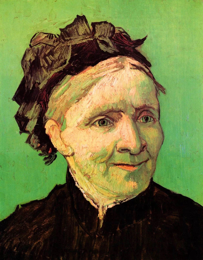 印象派画家高更和梵高笔下的母亲形象更具个人特色,高更故意夸张了母亲的高鼻梁与厚嘴唇,也许是为了凸显其母亲的西班牙血统,为人物增添一些异域特征。梵高根据一张母亲的黑白照片,加上自己对母亲的记忆与想象,将画面基调处理为强光下的绿色,来表达自己对母亲的独特感受。这时的母亲们开始有了自己的精神面貌,她们各具特色,不再是被共同体想象出来的统一符号,而是许许多多现实的存在。