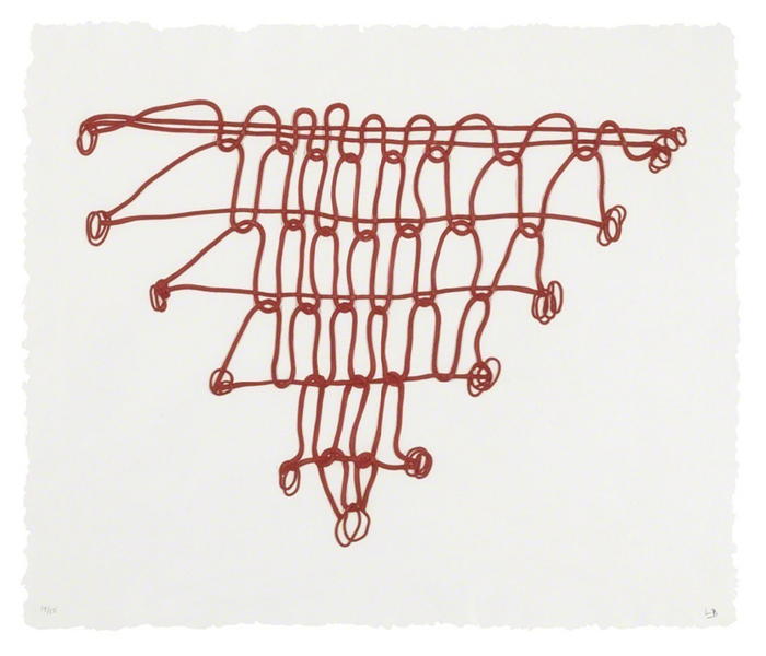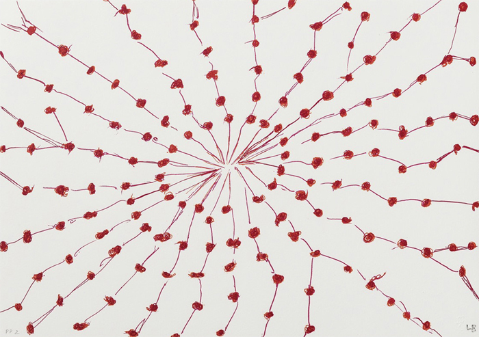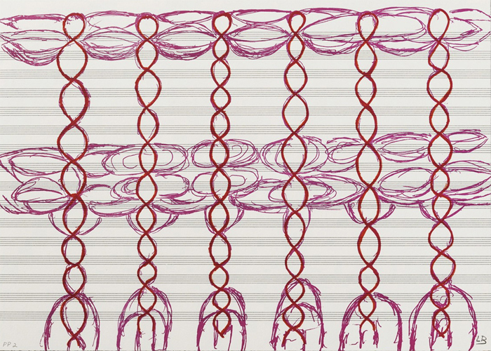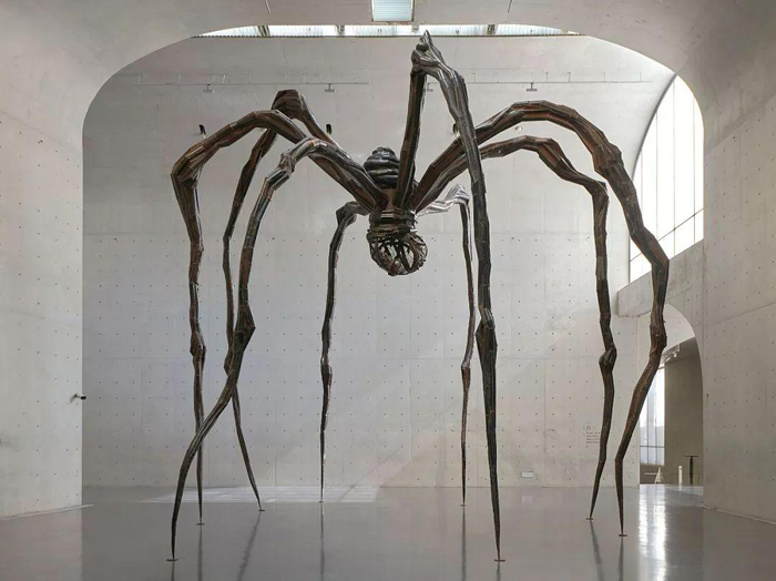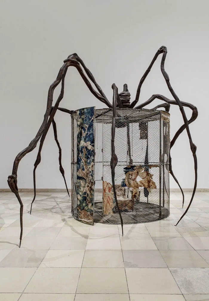 当代艺术中也有不少表现母亲题材的艺术作品,但与传统绘画不同的是,他们一改传统绘画中母亲角色惯有的低眉顺目、慈祥无私的神态,在作品中进一步探讨何为母亲,母性是被建构出来的吗?如果是,又是如何被建构的,他们质疑和反思母爱作为母性的唯一表现方式,质疑传统艺术和文化中对母性的浪漫化,企图掀开遮蔽在它之上的父权话语体系。在路易斯·布尔乔亚的作品《maman》中,她用蜘蛛比喻自己的母亲,用蜘蛛的形象和特性替代自己对母性的想象,这个高9米,由8条曲折纤细的腿支撑起来的庞然大物看起来有些可怖,但走到它下方,就会看到在网兜内的白色卵状物,这个庞然大物就这么守护着自己的后代,外表的恐怖和这些蜘蛛卵构成了它的矛盾性,使《maman》有了一些脆弱和无力。布尔乔亚制作了许多和蜘蛛有关的作品,在《spider(cell)》中,巨大的蜘蛛匍匐在一个鸟笼状的房间上,蜘蛛的腿包围着笼子,笼子的周围布置着挂毯,观众可以走进笼子坐在中间的椅子上,这个装置作品既让人感受到蜘蛛的凌厉,也感受到挂毯的温暖,既有被cell——牢笼的囚禁之感,也有被牢笼、挂毯以及蜘蛛腿的保护之感。之所以要用到挂毯,是因为布尔乔亚的母亲在布尔乔亚小时候以缝补挂毯为生,这一重复性的行为在布尔乔亚的童年记忆中犹如蜘蛛结网般弥漫,母亲从事的是毫无创造性的工作,但就是这份工作,为小布尔乔亚编织出了足以呵护她成长的网。在她早期的一些绘画作品中,也可以见到她对“编织”这一行为的思考和表现。