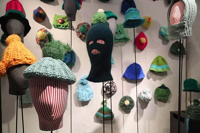 艺术家胡尹萍通过以“小芳”之名,谎称一家北京外贸公司收购节日帽子订单,付费收集了150顶妈妈和家乡阿姨手工编织的帽子,这一行为不仅完成了对母亲及家乡其他妇女的劳动收割,也完成了对她们的时间收割,但和资本主义对劳工的收割和父权话语体系对母亲们的收割不同的是,艺术家让这种对时间和体力的消耗有了意义,当这些帽子出现在画廊美术馆,出现在反特朗普大游行,出现在爱尔兰绿帽节上时,这些帽子不再是无意义的重复性劳动,这些毛线也不再是女性迫于资源匮乏而代际相传的廉价制作材料。
