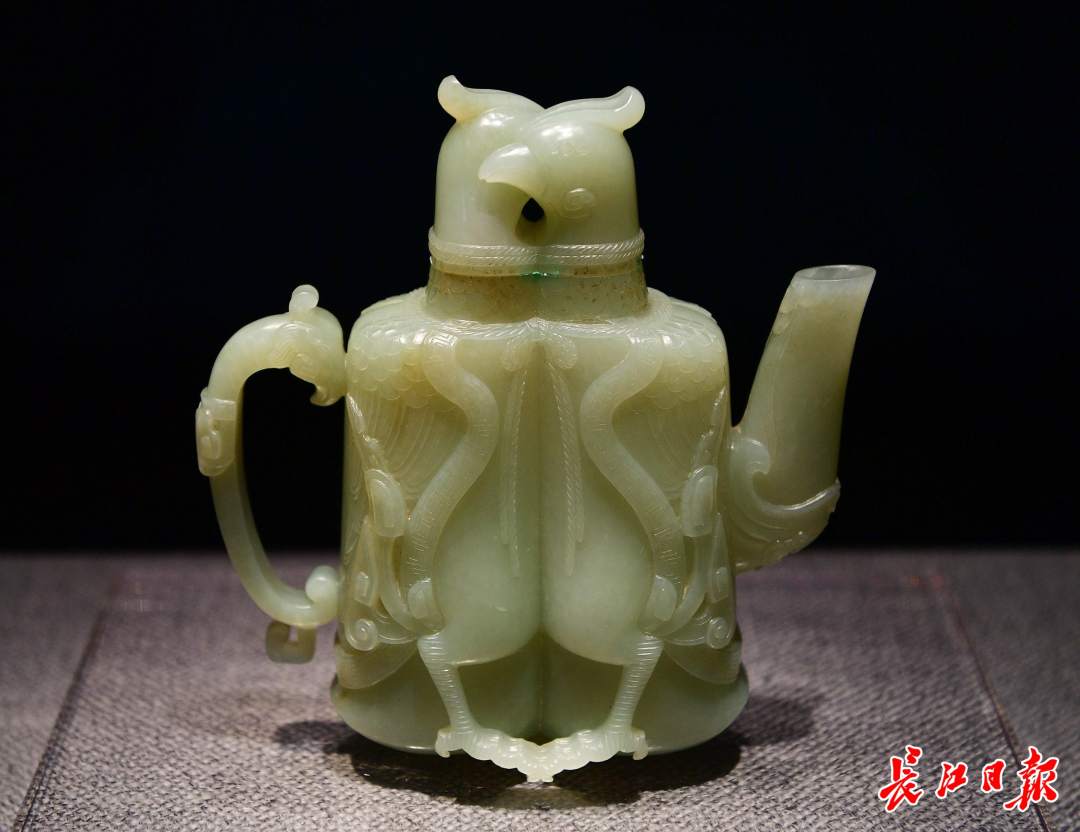 清代“乾隆”款白玉双凤交颈壶。记者李永刚 摄