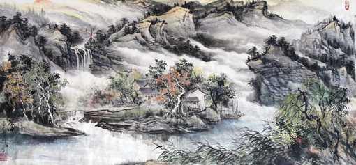《高山泉韵》规格:四尺整张 价格:2000元一平尺