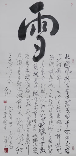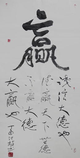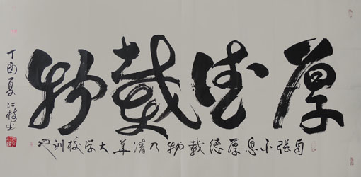专家点评作品:其书法直取自然万象入书,大气磅礴,匠心独具。其作品大开大合而不失肃穆儒雅,潇洒飘逸而不失浑厚稳重,痛快淋漓而不失规矩法度,实可谓动中寓静,以静致动,静以动美,动因静生,妙趣无穷,苍劲有力,气度非凡,美不胜收,有滚滚风云一泻千里之势,自成一体。