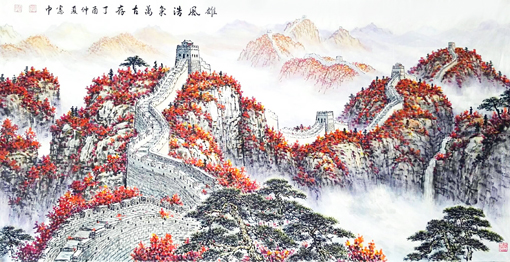 《长城内外尽朝晖》 规格:185×96cm 价格:8000元一平尺