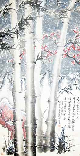 《风霜雨雪等闲度 虚心高节净无尘》 规格:136cm×68cm 价格:60000一幅