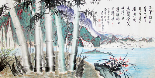 《巨笔挥就擎天竹 绿水青山展画图》 规格:136cm×68cm 价格:60000一幅