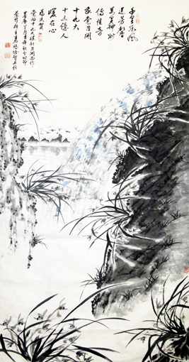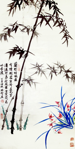 《兰竹相依最有情 刚柔互济意无穷》 规格:98cm×49cm 价格:30000一幅
