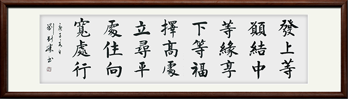 刘新胜作品《发上等愿,结中等缘,享下等福,择高处立,就平处坐,向宽出行》尺寸:180×50cm 价格:2000元