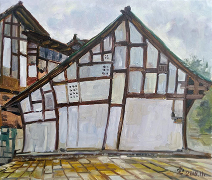 1985年水彩画《恐龙馆》入选自贡、福建三明市美协美术联展。