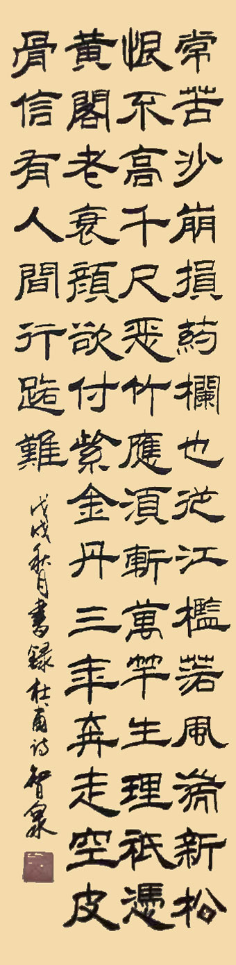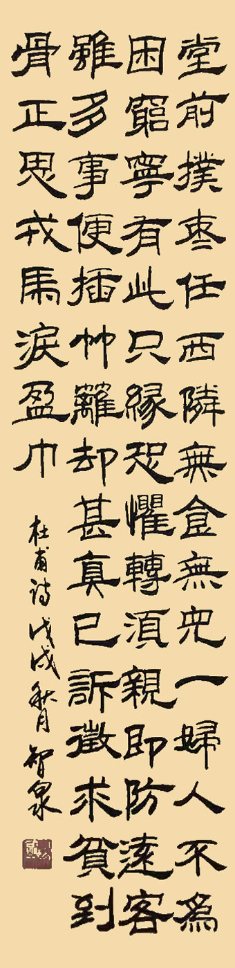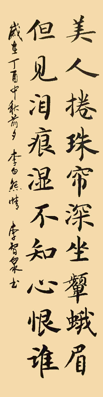 李智泉老师几十年如一日,遍临汉碑、唐楷及今名家碑帖。擅隶书、楷书、工笔画等。多次荣获国内省市一、二等奖。绘画以工笔仕女为主,兼画花鸟、山水等题材。创作作品多被国内外、个人、企业及院校机构收藏。