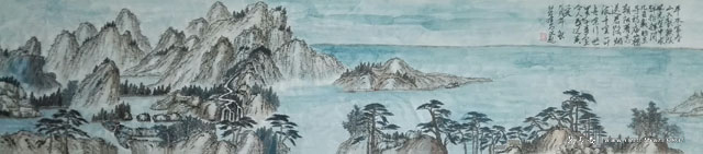 贺德昌作品 浅降彩山水长卷(局部)《盛世富春山居图》整卷规格:628cm×46cm