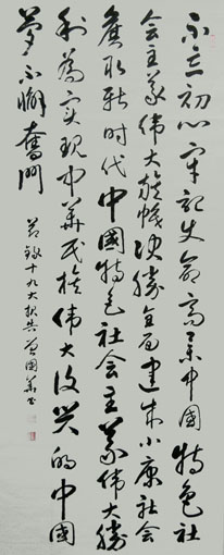 部分作品及简历载入《中国书画名家传世大辞典》《中华功勋人物大典》《世界优秀专家人才名录》《共和国功勋名人风采》《世界人物辞海》《世界名人录》等大型书画集和传略典籍。在研究和创作书法过程中,注重深入生活,感悟人生,师古不泥,博采众长,融会贯通,追求卓越,崇尚完美。其书作用笔凝练精到,章法整规有序;线条丰润饱满且刚柔相济,富有很强的韵律感;点画递相辉映,顿挫有致,回锋转笔奔放自如,韵态卓约之中蕴含着极为流畅的美感。无论是运笔走势的布控,还是思维意识的整合,都显示出娴熟的艺术功力和深厚的艺术功底。意境深邃高远,内涵丰富宽广,自然而然的实现了景致与情怀,传统与个性的和谐统一,古朴与新雅,雄迈与灵动的完好结合;既有现代清新之感,又有古典质朴之美,翰墨中萌发着源于生活的浓郁芳香,彰显出特有的艺术气质,可为传世珍品……多年临池不辍,融多家特长,取得了较高的艺术成就!