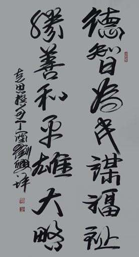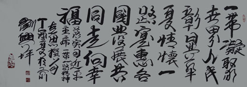 刘兴坪先生作为爱国英才,以卓越艺术家和优秀的社会活动家的崇高精神、强烈责任感和博大胸怀,认真贯彻执行党和政府的大政方针,遵循“百花齐放、推陈出新”的文艺方针,投身于书法艺术事业,长期从事书法艺术研究、创作和推广,“因义生情,由情赋形”,书法艺术造诣高深,臻于炉火纯青的境界,在我国书法艺术领域独树一帜,蜚声海内外,树立起成功人士事业的丰碑。先生坚持“优秀艺术服务于人民”,笔走龙蛇,仁风广布,弘扬优秀的中华文明,为社会主义现代化建设提供精神动力,为人民群众提供优秀的精神食粮,赢得良好的社会声誉,建立起艺术家辉煌的信誉大厦。刘兴坪先生的名字和爱国报国宣言以将与万里长城“爱国功德榜”长存,流芳百代,激励亿万华夏子孙为祖国繁荣富强而奋斗,先生为本人家族赢得了至高无上的荣誉,受到族人爱戴。