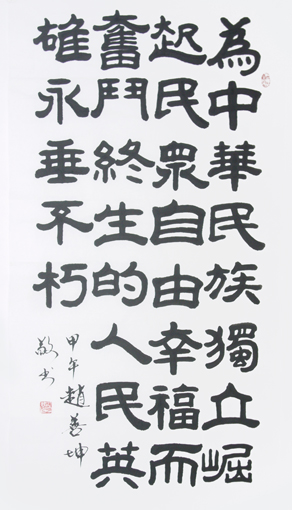 赵善坤,端城山人,观浪斋主,1945年生,广东高要(古属端州)人,1968年毕业于华南工学院(现名华南理工大学);中国人民艺术家协会会员,中国书法家协会荣誉主席,中国当代著名书法家,国家一级书法师,中国国际现代艺术研究中心书法高级研究员、国家书画院高级研究员;荣获广东省当代文化名人,广东省书法家协会荣誉主席,岭南杰出书法大师,全国书法大师,中国书法艺术研究院院士,中国书法艺术特别贡献奖,全国杰出书法功勋人物,中国书画名家金马奖,中国书法兰亭奖终身成就奖,中国书法最高奖-真卿奖,中国书法事业终身成就奖,联合国书法艺术终身成就奖;中华当代书圣、书仙、书神,文化部特殊津贴专家,国务院特殊津贴专家,中国最具收藏及投资价值书法家,中国时代最具影响力书画大家,当代书坛巨匠,全国书坛泰斗,全国杰出书法功勋人物,中国十大功勋艺术家,中国书法六大家,中国三大杰出书法名家,中国当代书坛三杰,当代中国书法艺术领军人物,共和国文化艺术功勋人物,共和国杰出书法大师,世界杰出华人艺术领袖,联合国和平书法大使,联合国“最高艺术传承人物”以及广东改革开放三十年突出贡献人物、深圳市优秀专家、中国全国电子工业系统劳动模范等荣誉称号。