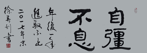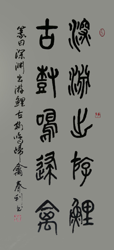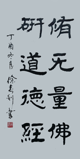 徐春利,字元丁,号躬行斋主,1957年9月生。自中学时期习练书法,始临柳公权《玄秘塔碑》、颜真卿《勤礼碑》、褚遂良《大字阴符经》等碑帖,后临《乙瑛碑》《张迁碑》《张猛龙碑》和泰山经石峪金刚经,兼习篆书《泰山刻石》及《说文解字》。现系中国书法家协会会员,山东省书法家协会会员,山东省楹联艺术家协会会员,济南铁路局书法家协会理事。