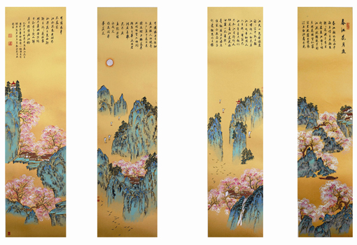 陈长智 林庆萍《春江花月夜》136x33cmx4 2016年