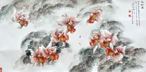 陈长智 林庆萍《九如图》 136cm×67cm 2008年