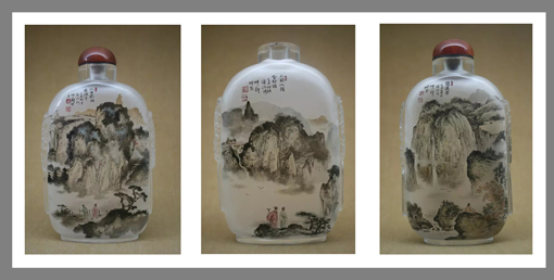 浏览刘坤岩大师内画与国画作品,视觉耳目一新,心旷神怡,真正可谓壶小乾坤大,纸老笔墨新,其作品小中见大,墨淡情深,一切大家之作品也不过如此。内画《水浒一百单八将》人物性格各异,面貌不一,风采奕奕,形神栩栩,背景则山林耸立,水浒邈远,姿态生动,气象万千,而这一切均凝聚于方寸一壶之中,集中而强烈地表现了梁山义军的英雄气概,《八骏图》八匹骏马或跪跌,或引颈舔食,或高嘶相啮,或倔犟不羁,神态各异,笔墨熔铸出骏马气势昂扬的千里驹,其泼辣雄浑,跌宕纵横的画风更是令人叹为观止,《山林多隐士》将国画之笔墨、构图、皱染融合于内画,令人感到既清新又亲切,此画清新之笔墨,突出了山泉迂回弯转涌下,此构图严谨,崇山雄厚,巨石突兀。林木繁茂,显示了全景山脉的磅礴气势。山村情景十分丰富,表现了,多层次的人物活动内容。表达了;高古、幽远、清雅、感到可行、可望、可居、可游的意境,散发着浓郁的生活气息。在如国画《赤壁怀古》画面以空旷宽阔的构图,表现了江水的浩荡气势,惊涛拍岸,浩渺空旷的大江之上。烟雾弥漫波浪陡起。水浪与水雾之虚渺形成对比,画家以墨笔皴水波浪的沉浮,用花青蓝渲染。亦体现出天连水、水接天、无风涌起千层浪之气势。《荷花》花的一角仅几叶淡墨、几朵淡彩。可谓淡墨矣。翠鸟俘现上方,然其寓情寓意高远。荷叶翩翩袖舞。荷花亭亭玉立,披劲风而不拆,出污泥而不染,其坚韧之性情,高尚之品格,令世人观之有悟,省之不骄。只有真才能新,只有新才能远。刘先生深谙其道。