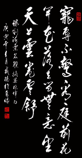 荣获十八大题贺特等奖并授予题贺艺术名家;中德建交四十周年大型艺术交流展特等奖并授予中德文化交流大使;中美国际艺术交流名家名作展金奖并授予中美艺术交流使者;2015年中美建交36周年被评为“中美杰出华人艺术家”并颁发证书和奖金;中国第二届书画作品大联展金奖;中法建交50周年“中国题贺艺术名家”等荣誉称号。其作品已成为国礼赠品。多件作品被美、德、日、韩、澳大利亚、香港、北京、上海、台湾等国内外朋友和博物馆、纪念馆等地收藏。