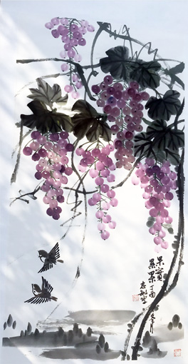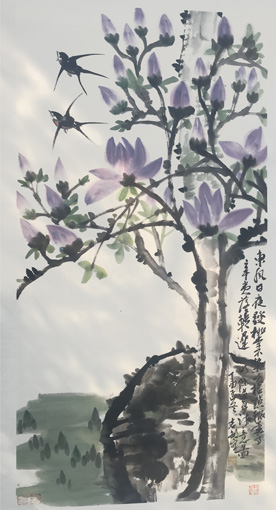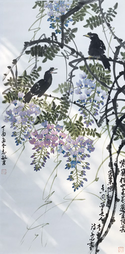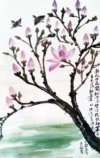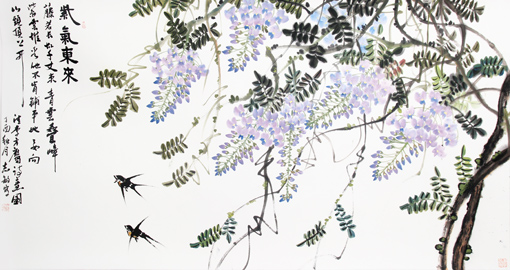 大为老师点评:肖志敏女士所作之画无不尽态极妍,生面别开,气旺神通,笔墨华滋,浑然天成,墨气淋漓,潇洒清新,厚实灵动,相映成趣,画面的结构繁复而有序,笔法奔入而有节,色墨粲然,玲珑剔透创造了充满激情和浪漫感性,但又是全然中国风格品味的现代花鸟画艺术。