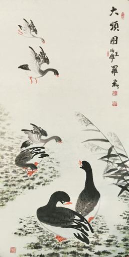罗维存,笔名罗飞,号耕云、雁鸣斋主。1945年生于沈阳,毕业于中国书画函授大学。国家一级美术师,号称北雁王,又号古稀雁翁。