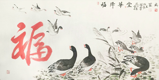 2015年中美建交36周年,他被选为“中美杰出华人艺术家”。其作品《鸿雁图》十幅被选为“美国邮票图案”,在全美及全球公开发行。