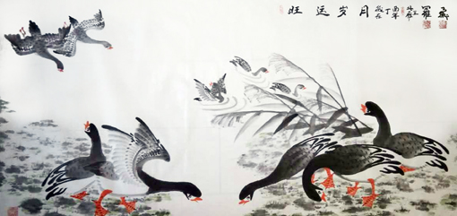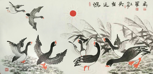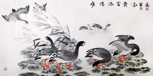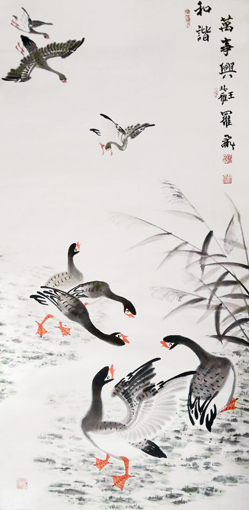 画家罗飞以专绘鸿雁著称当代画坛,他笔下的鸿雁如同仙女下凡,神态各异、千姿百态、活灵活现、栩栩如生、神韵十足,表现极大的生命力。欣赏者如同走进美丽的大自然而心旷神怡。画如其人,他一生淡泊名利、重义情深、书生意气、学者风范并兼。声望日益渐高,收藏者剧增。