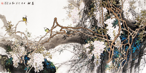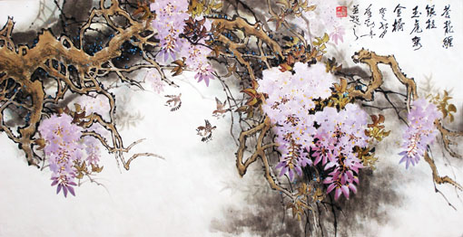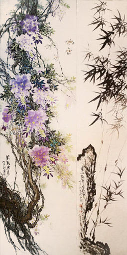 《紫气东来》180x34cm 《虚心劲节不知寒》180x20cm