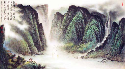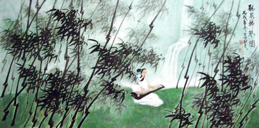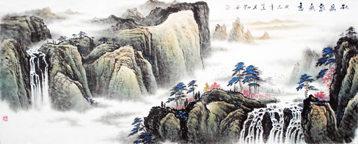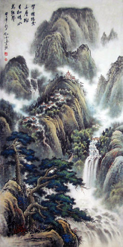 《翠岭拥云千层树 青松倚水万弦琴》 180x98cm