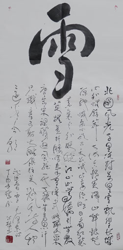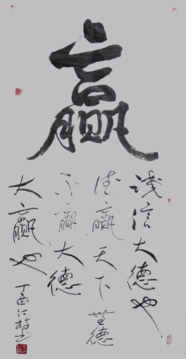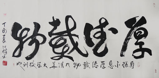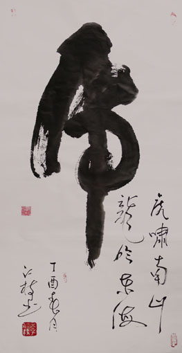 专家点评作品:其书法直取自然万象入书,大气磅礴,匠心独具。其作品大开大合而不失肃穆儒雅,潇洒飘逸而不失浑厚稳重,痛快淋漓而不失规矩法度,实可谓动中寓静,以静致动,静以动美,动因静生,妙趣无穷,苍劲有力,气度非凡,美不胜收,有滚滚风云一泻千里之势,自成一体。