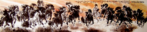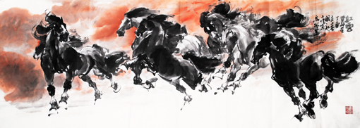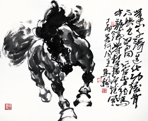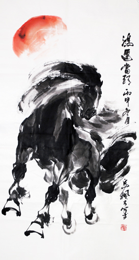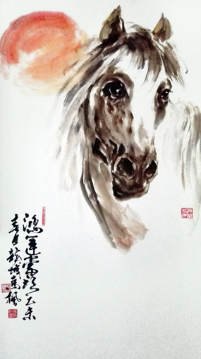 国画作品以大写意马著称于画坛,其造型严谨,笔墨酣畅,神韵超然,正大气象,被美术评论界称为“中华一骏”。书法作品师古不泥,一呈典雅,激情如瀑,出神入化,尤以左笔反书震惊书坛,堪称一绝。多次参加全国书画大展,并获金、银、铜大奖。多次被国家、省、市电视台报道。出版专著《与大师同行--中国青少年艺术教程》、《中国长城艺术家》;论文先后在《教育研究》、《中国美术教育》、《美苑》等国家省市刊物中发表。美术作品《雄风万里图》在2006年全国教师大赛中荣获一等奖;《天行健》入选庆祝中国人民解放军建军85周年全国国画精品展;《八千里路云和月》在国庆60周年书画大赛中荣获一等奖;《十骏图》2008年在全国中国书画家邀请赛中荣获金奖;《威震八荒》2010年全国书画名家作品邀请赛活动中荣获银奖;《盛世龙腾》在2011年全国中国画作品大赛中荣获优秀奖,作品被编入《中国书画名家作品选粹》;2012年《亚洲雄风》在国际书画邀请赛中荣获金奖,并出席了韩国国际交流展,作品编入《中国书画名家大辞典》,被授予中国当代书画名家、中韩文化大使等荣誉称号;2014年代表中国书画名家参加香港国际书画艺术交流展和联谊笔会;2015年7月在纪念中国人民抗日战争暨世界反法西斯战争胜利70周年,作品被中国国际集邮网作为国家名片出版发行,首发式上代表书画家接受中央电视台专访,被评为中国当代书画艺术大家荣誉称号;同年受邀中国教育电视台水墨丹青栏目--东方神骏的专访;被国家艺术机构推选为全国百位优秀人民书画家;被中国长城艺术组委会推介为《全国十大艺术大家》,作品《龙马精神》永久镌刻在长城之上,永载史册;2016年5月被中美艺术机构评选为中美文化交流大使、中美杰出艺术家排行榜100强荣誉称号;荣获中央电视台中国骄傲?2016年度影响力德艺双馨书画家荣誉称号;最受市场欢迎的百强书画家荣誉称号;2017年8月作品荣登中法建交53周年纪念邮票,首发式在巴黎隆重举行,被评为2017中法文化交流杰出贡献艺术家。许多作品被国内外政要、博物馆、企事业、名人、及收藏家收藏。