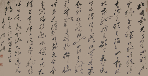 内行看门道,外行看热闹。书法佳作,非一目尽览详情。在数十载的笔墨生涯中,潘新明摸索出了一条自己的创作思维,他的书法作品有云烟满纸的图像美。师古不泥,大胆创新。他的书法实力更高于声望,在融贯古今的基础上,融入时代元素、内容元素、思想元素,创作出独具匠心,出神入化的作品。潘新明在创作实践中,不流于形式,有着自己独特的理解和思索,创作出了一大批精彩的书法作品,具有很高的艺术收藏价值。 其书法藏阴潜阳,书法虽小技但通大道。潘新明的草书作品用笔大胆独特,章法布局合理,功底极为深厚,笔风遒劲力道,作品中笔法苍劲,挥洒自如,用墨一枯一润、一顺一逆,刚柔相济,阴阳互生,在艺术表达上具有了一份赏心悦目的别样之美。潘新明以洒脱笔墨,将书法作品演绎得生动活泼,洋洋洒洒,颇有神韵。同时,作品也书出他的高朗超迈,爽透豁达之气。在潘先生的笔下,汉字仿若有了生命,那一撇一捺间展现的是他的个人魅力和艺术气质。不禁令人在品读曼妙文字的同时,似乎闻到淡淡花香。结体稳健端庄、笔墨流畅自然,从运笔、结构来看灵动而不杂乱,线条有笔走龙蛇之势,笔画光滑清爽、用墨浓淡适宜、字体大小变化有致、奇逸潇洒,结构严谨,不刻意求工而流露出恣肆奔放之感,其字极为放纵舒展、体势如云流水般自如,意态飘逸自然,气势浑厚、极具艺术魅力。作品看起来悦目大气,明神望字,深居韵味,特别是在运笔上,凸显古典与现代的节奏拐点。此幅作品耐看细品,足见其功力深厚、艺术高超。咫尺显妙境,佳作共赏之。