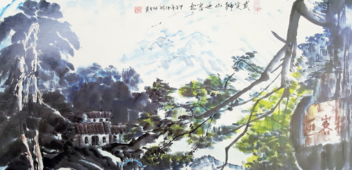 杨书英作品《狮山迎客松》规格:134cmx68cm